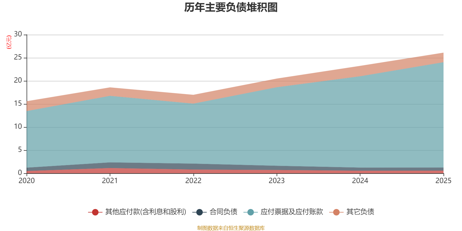 负债重大变化方面,截至2025年末,公司应付票据及应付账款较上年末增加15.38%,占公司总资产比重上升5.78个百分点;短期借款较上年末减少85.71%,占公司总资产比重下降0.5个百分点;其他流动负债占公司总资产的0.46%,上年末为0;长期递延收益较上年末增加314.9%,占公司总资产比重上升0.44个百分点。