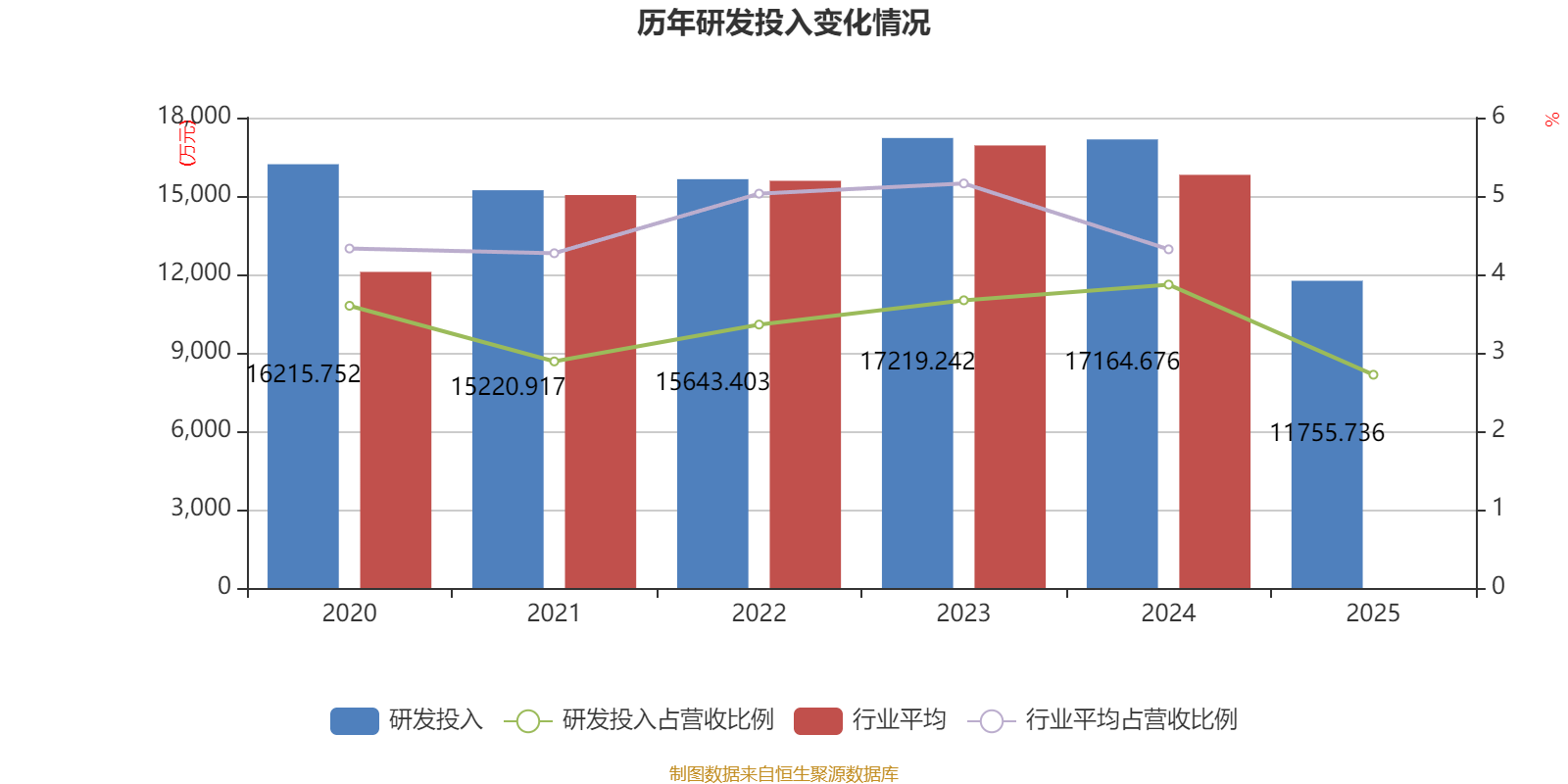 2025年全年,公司研发投入金额为1.18亿元,同比下降31.51%;研发投入占营业收入比例为2.72%,相比上年同期下降1.15个百分点。此外,公司全年研发投入资本化率为0%。