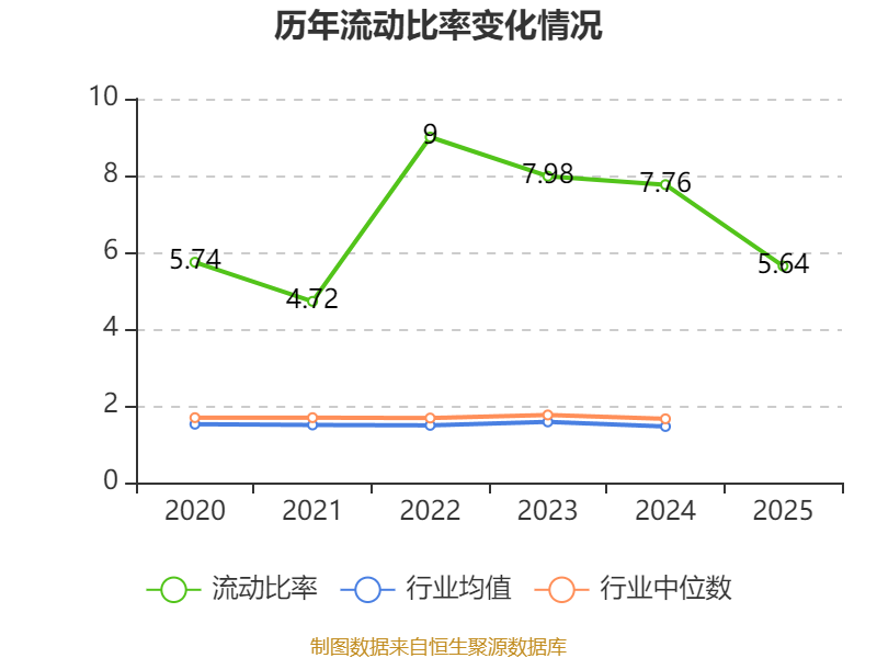 2025年,公司流动比率为5.64,速动比率为4.41。