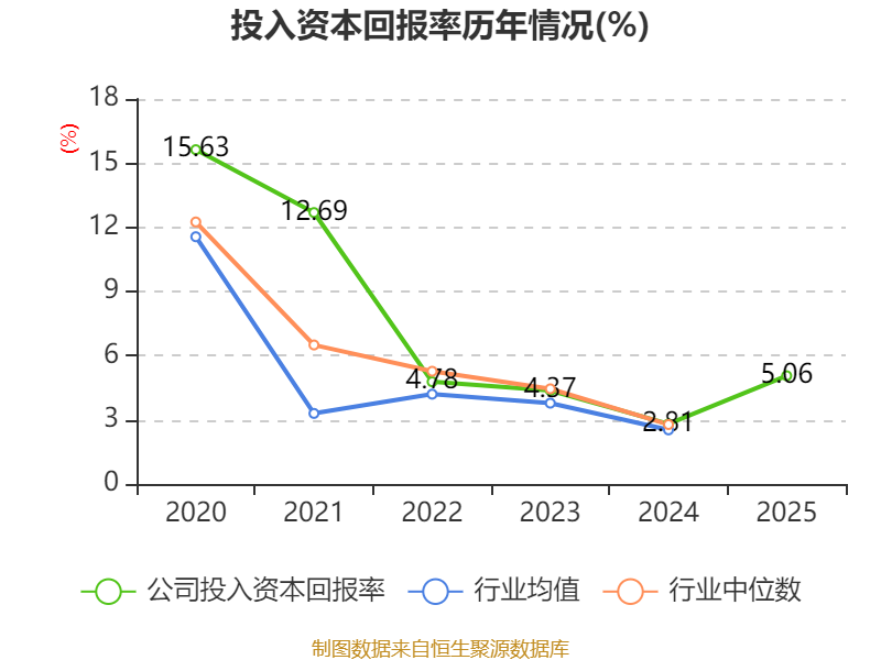 数据显示,2025年公司加权平均净资产收益率为5.28%,较上年同期上升2.4个百分点。公司2025年投入资本回报率为5.06%,较上年同期上升2.25个百分点。