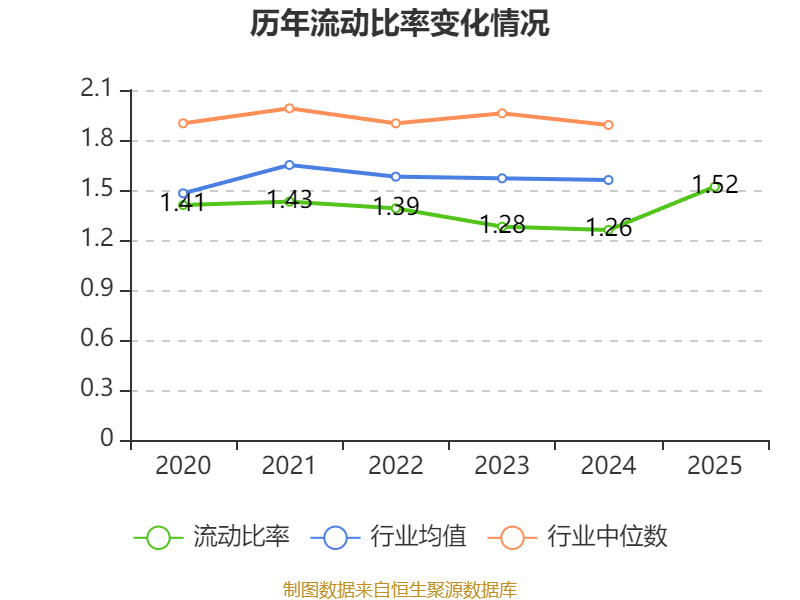 2025年,公司流动比率为1.52,速动比率为1.52。