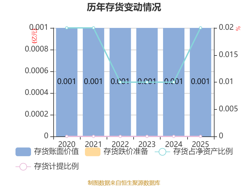 从存货变动来看,截至2025年末,公司存货账面价值为8.1万元,占净资产的0.02%,较上年末增加2.09万元。公司本期没有计提存货跌价准备。
