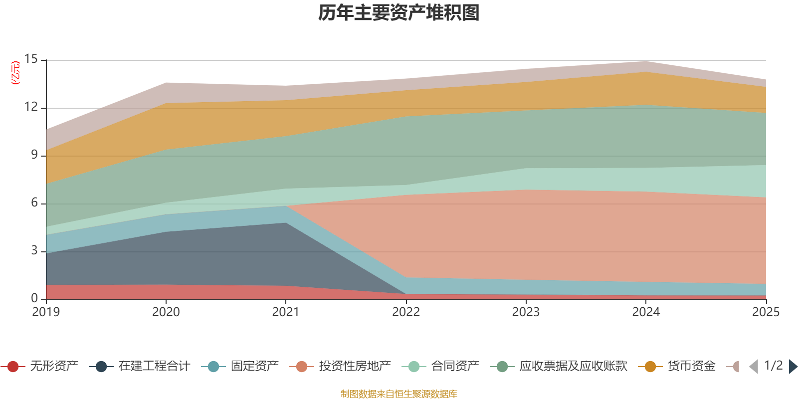 资产重大变化方面,截至2025年末,公司合同资产较上年末增加37.5%,占公司总资产比重上升4.85个百分点;应收票据及应收账款较上年末减少17.69%,占公司总资产比重下降2.87个百分点;货币资金较上年末减少21.13%,占公司总资产比重下降2.02个百分点;投资性房地产较上年末减少4.26%,占公司总资产比重上升1.42个百分点。