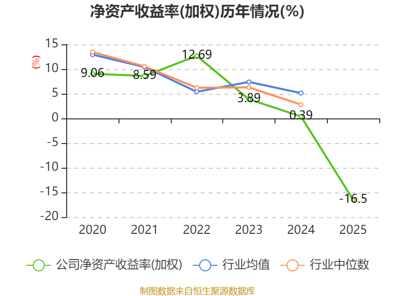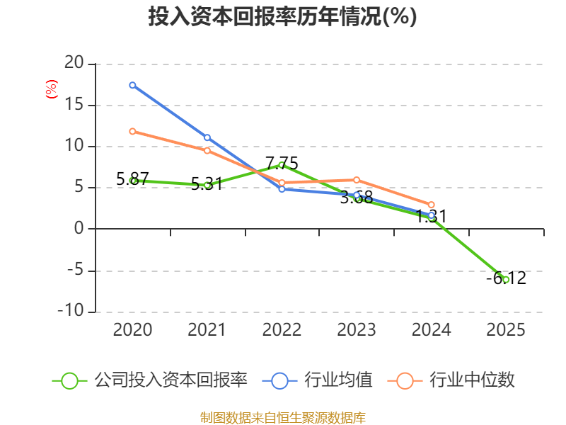 数据显示,2025年公司加权平均净资产收益率为-16.5%,较上年同期下降16.89个百分点。公司2025年投入资本回报率为-6.12%,较上年同期下降7.43个百分点。
