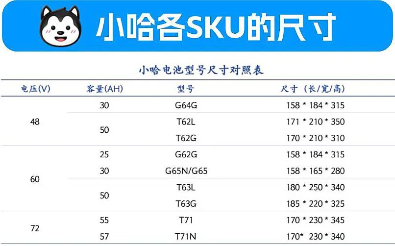 通过转换连接器,小哈的换电池产品能适配大部分48伏、60伏和72伏系统的车型。