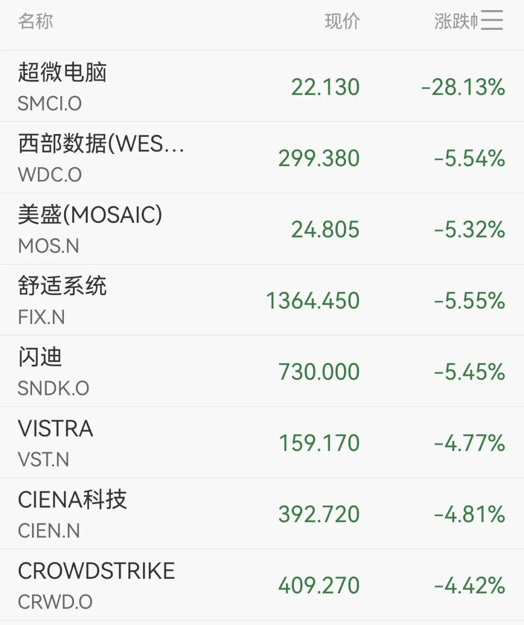 此外,超微电脑跌超28%,创2024年11月以来新低。据财联社,超微电脑近日卷入一起违反美国出口管制的走私案件。