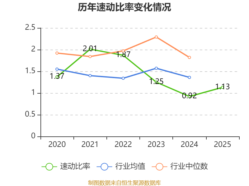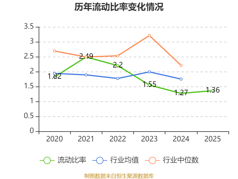 2025年,公司流动比率为1.36,速动比率为1.13。