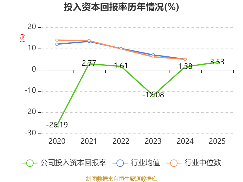 数据显示,2025年公司加权平均净资产收益率为3.53%,较上年同期上升2.92个百分点。公司2025年投入资本回报率为3.53%,较上年同期上升2.15个百分点。