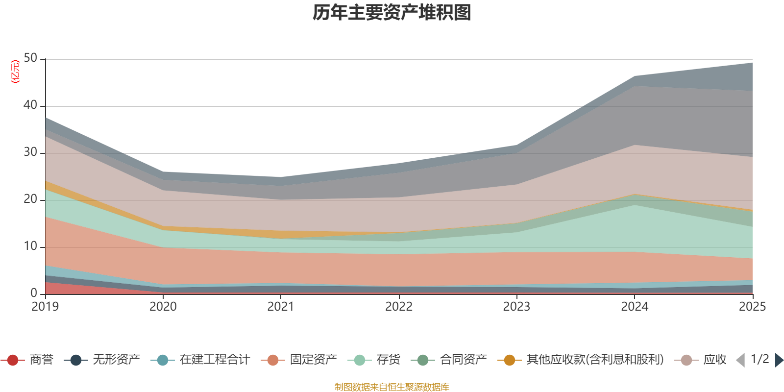 资产重大变化方面,截至2025年末,公司存货较上年末减少32.23%,占公司总资产比重下降7.76个百分点;固定资产较上年末减少29.52%,占公司总资产比重下降4.74个百分点;其他流动资产较上年末增加286.55%,占公司总资产比重上升3.55个百分点;交易性金融资产合计占公司总资产的3.05%,上年末为0。