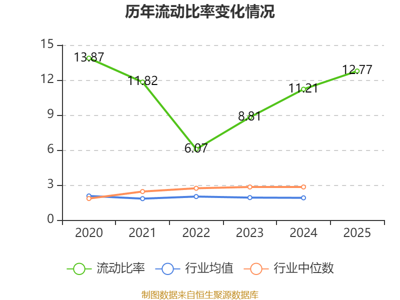 2025年,公司流动比率为12.77,速动比率为11.83。