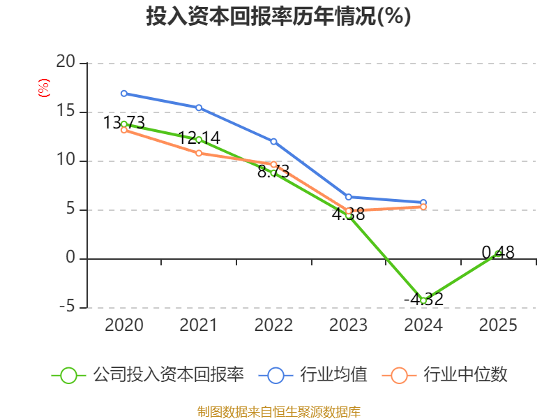 数据显示,2025年公司加权平均净资产收益率为1.23%,较上年同期上升5.53个百分点。公司2025年投入资本回报率为0.48%,较上年同期上升4.8个百分点。