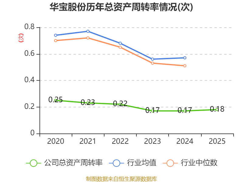 中证智能财讯华宝股份(300741)3月21日披露2025年年度报告。2025年,公司实现营业总收入13.38亿元,同比下降1.40%;归母净利润8380.35万元,同比扭亏;扣非净利润7529.97万元,同比扭亏;经营活动产生的现金流量净额为1.73亿元,同比下降50.72%;报告期内,华宝股份基本每股收益为0.14元,加权平均净资产收益率为1.23%。公司2025年度分配预案为:拟向全体股东每10股派现0.3元(含税)。
