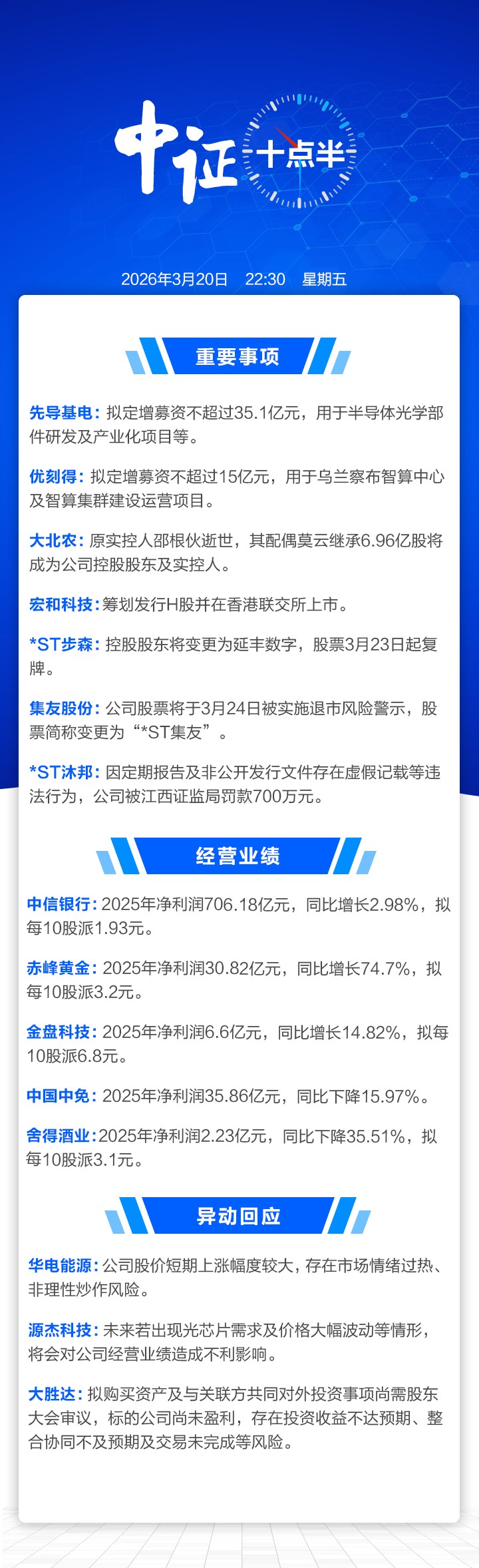 【中证十点半】先导基电拟定增募资不超35.1亿元聚焦半导体相关业务;宏和科技拟赴港上市
