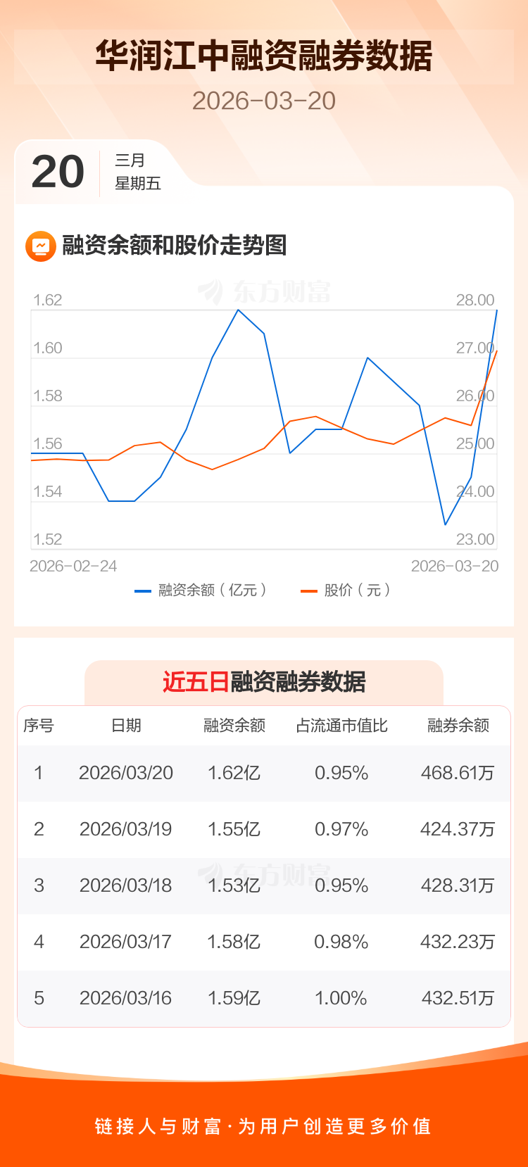 交易所最新数据显示,华润江中于2026年3月20日获融资买入2959.04万元,融资偿还2239.41万元,当日融资净买入719.63万元。目前,该股融资余额1.62亿,占流通市值比例为0.95%。