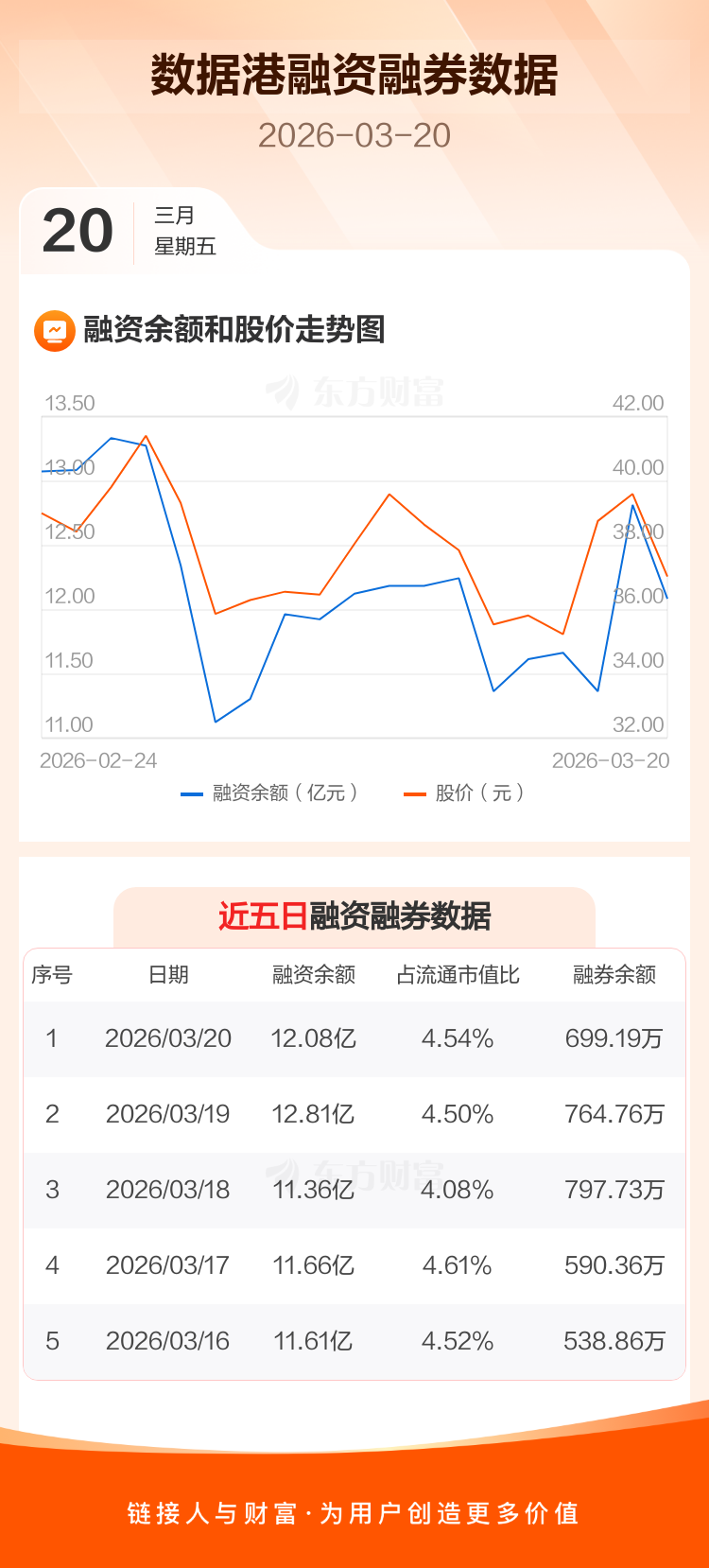 交易所最新数据显示,数据港于2026年3月20日获融资买入2.45亿元,融资偿还3.18亿元,当日融资净偿还7304.45万元。目前,该股融资余额12.08亿,占流通市值比例为4.54%。