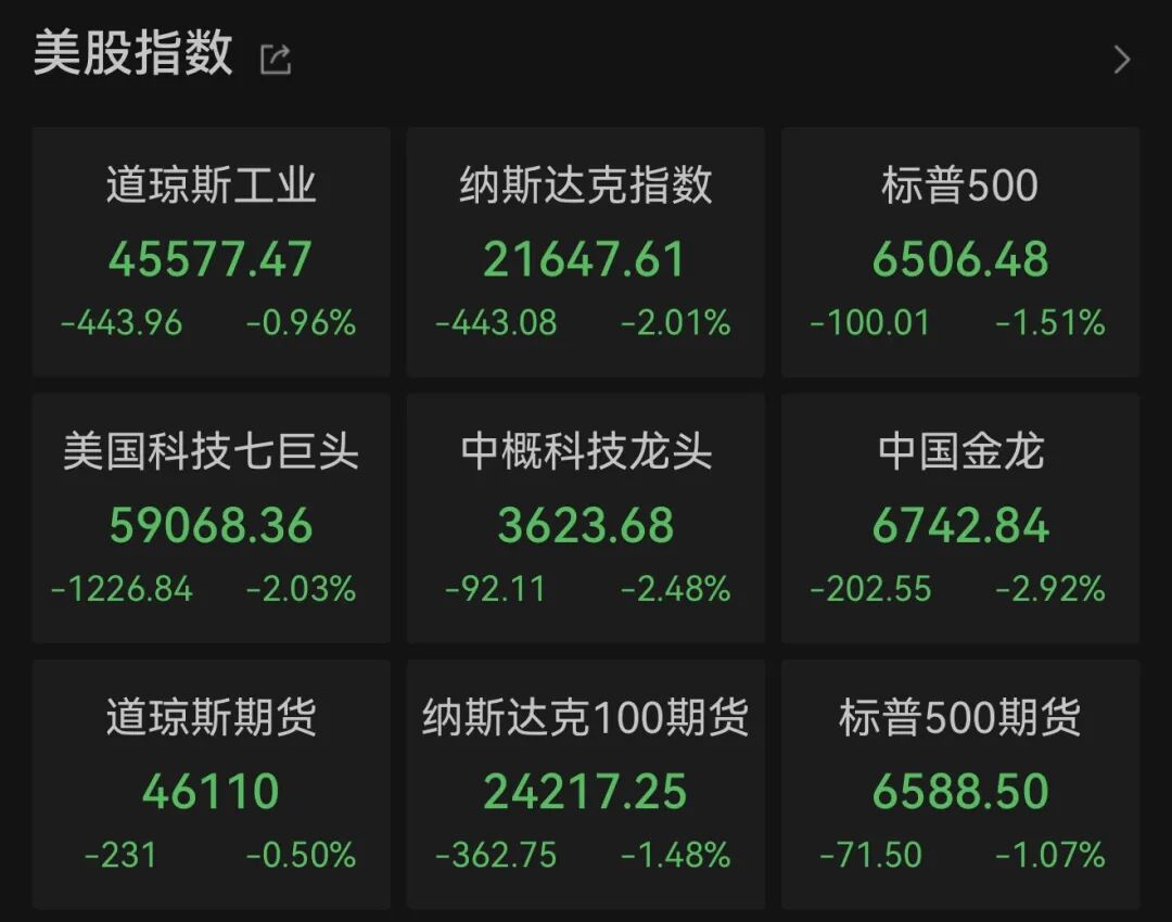 当地时间3月20日,美国三大股指全线收跌。其中,道指跌0.96%报45577.47点,标普500指数跌1.51%报6506.48点,纳指跌2.01%报21647.61点。