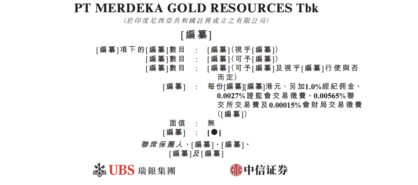 PT Merdeka Gold Resources Tbk - S递表港交所