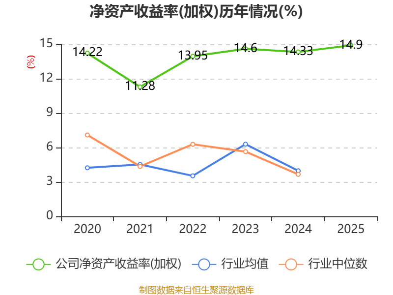 数据显示,2025年公司加权平均净资产收益率为14.9%,较上年同期上升0.57个百分点。公司2025年投入资本回报率为14.84%,较上年同期上升2.09个百分点。