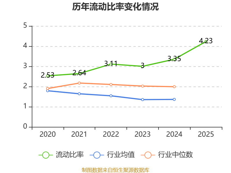 2025年,公司流动比率为4.23,速动比率为3.9。