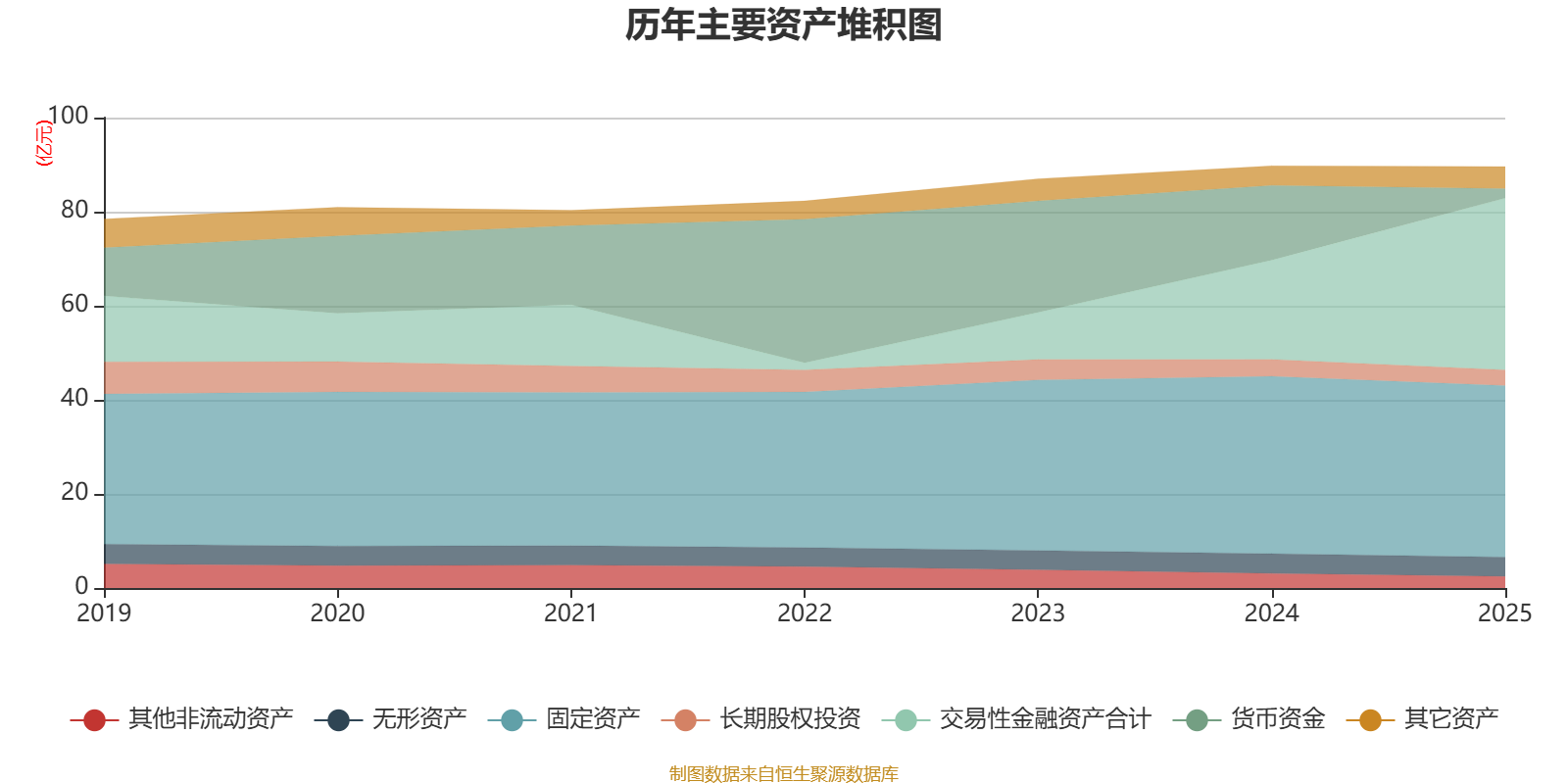 资产重大变化方面,截至2025年末,公司交易性金融资产合计较上年末增加73.07%,占公司总资产比重上升17.26个百分点;货币资金较上年末减少87.38%,占公司总资产比重下降15.44个百分点;存货较上年末增加108.39%,占公司总资产比重上升1.94个百分点;固定资产较上年末减少3.29%,占公司总资产比重下降1.3个百分点。
