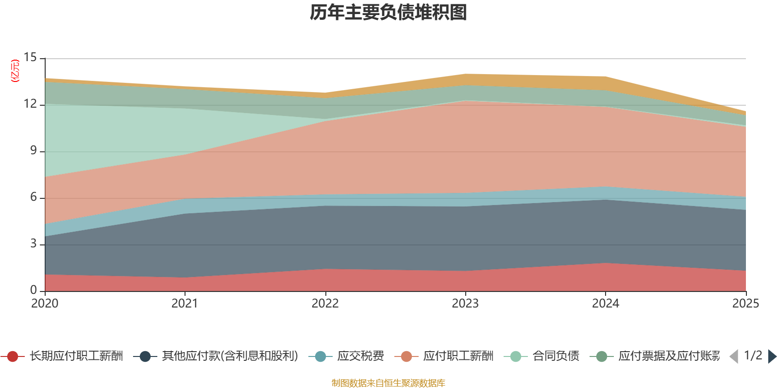 负债重大变化方面,截至2025年末,公司应付职工薪酬较上年末减少12.09%,占公司总资产比重下降0.68个百分点;长期应付职工薪酬较上年末减少27.59%,占公司总资产比重下降0.55个百分点;短期借款较上年末减少100%,占公司总资产比重下降0.54个百分点;应付票据及应付账款较上年末减少37.64%,占公司总资产比重下降0.44个百分点。
