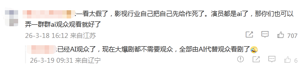 大众对此并不买账。“AI演员假人感”“AI演员人山人海”“AI观众 AI粉丝 AI打分”等话题相继登上热搜。有网友直言,将一切都交给算法,就不再需要真人了。