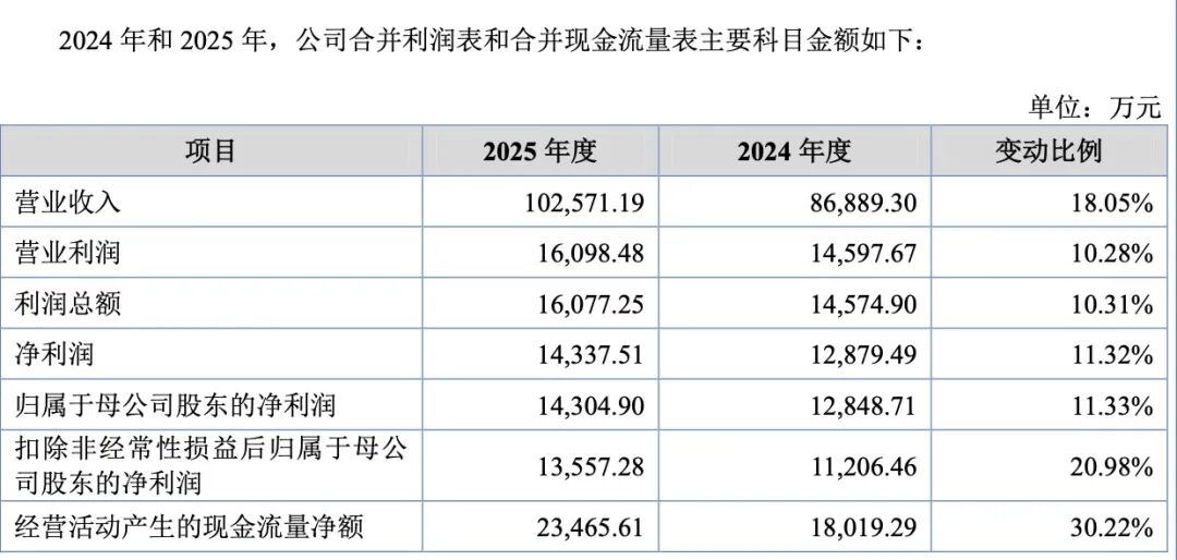 隆源股份招股书称,公司2025年实现营业收入10.26亿元,同比增长18.05%;归属于母公司股东的净利润1.43亿元,同比增长11.33%。