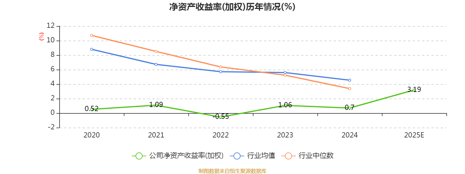 数据显示,2025年公司加权平均净资产收益率为3.19%,较上年同期下降1.88个百分点。