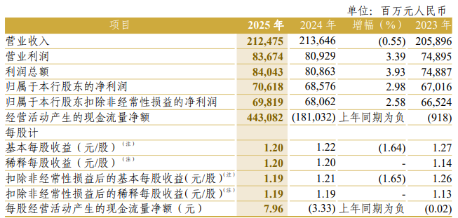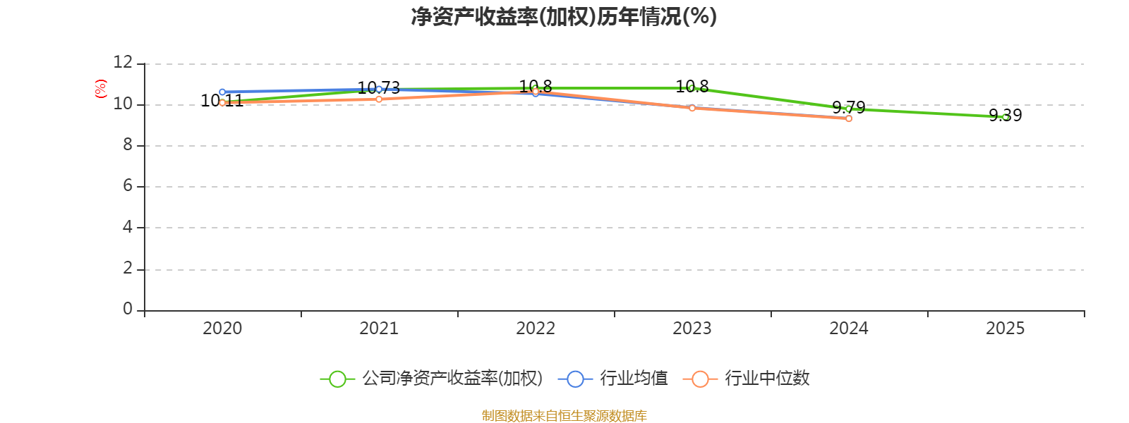 数据显示,2025年公司加权平均净资产收益率为9.39%,较上年同期下降0.4个百分点。