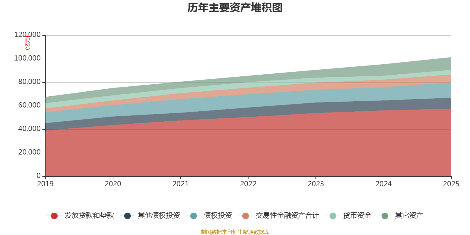 资产重大变化方面,截至2025年末,公司发放贷款和垫款较上年末增加2.6%,占公司总资产比重下降2.03个百分点;债权投资较上年末增加17.33%,占公司总资产比重上升1.22个百分点;衍生金融资产较上年末减少52.26%,占公司总资产比重下降0.5个百分点;买入返售金融资产较上年末增加24.49%,占公司总资产比重上升0.25个百分点。
