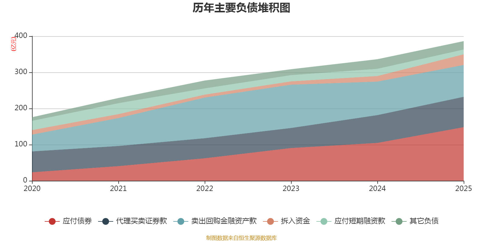 负债重大变化方面,截至2025年末,公司应付债券较上年末增加41.7%,占公司总资产比重上升5.97个百分点;卖出回购金融资产款较上年末减少5.2%,占公司总资产比重下降3.01个百分点;拆入资金较上年末增加91.32%,占公司总资产比重上升2.33个百分点;应付短期融资款较上年末减少32.68%,占公司总资产比重下降1.69个百分点。