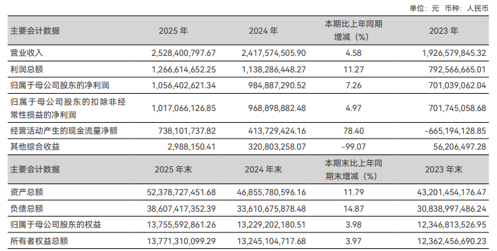 数据显示,2025年公司加权平均净资产收益率为7.78%,较上年同期上升0.09个百分点。