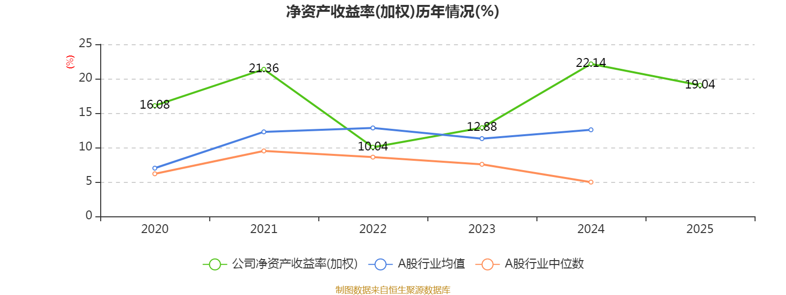 数据显示,2025年公司平均净资产收益率为19.04%,较上年同期下降3.1个百分点。