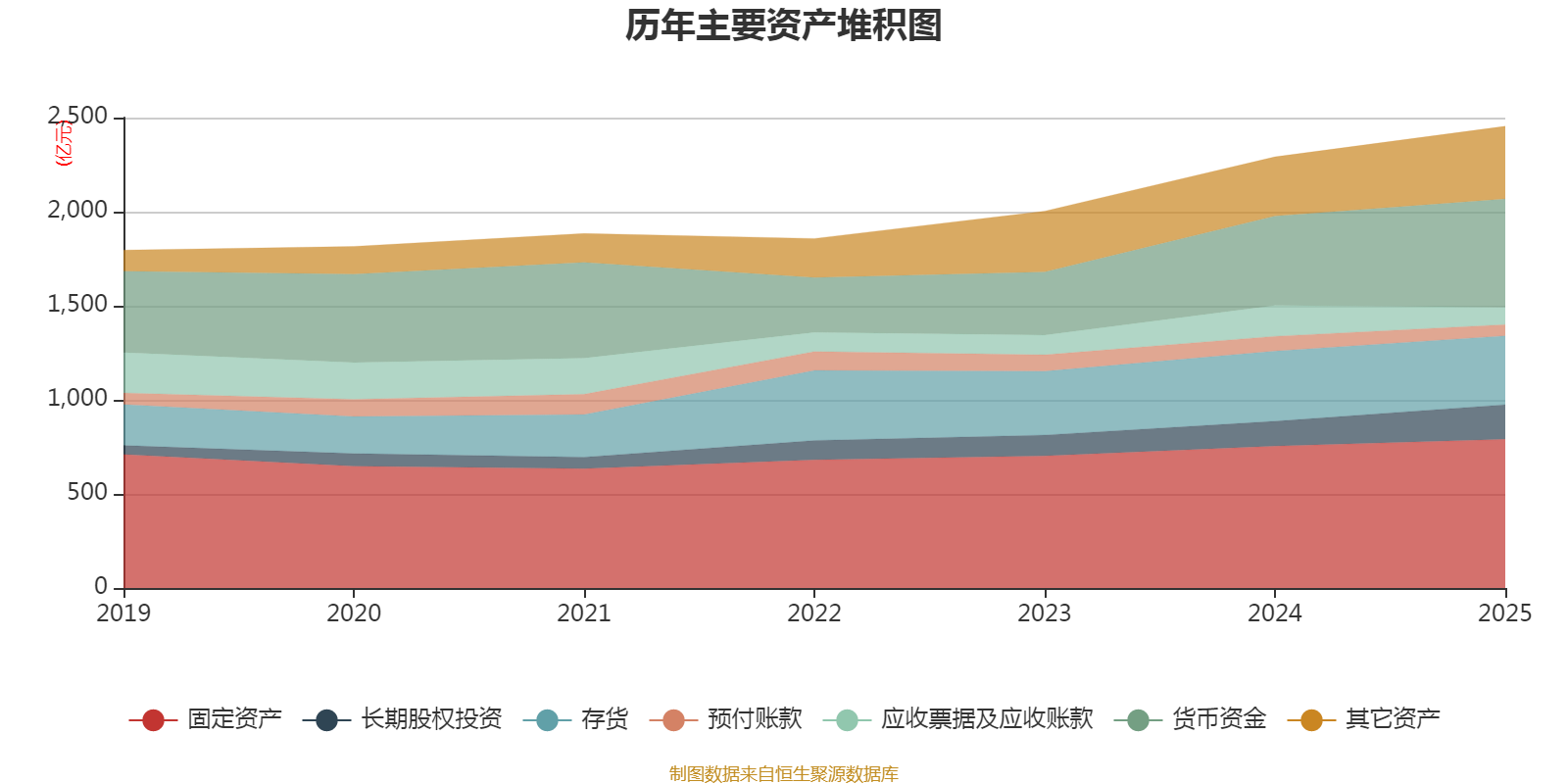 资产重大变化方面,截至2025年末,公司应收票据及应收账款较上期末减少43.58%,占公司总资产比重下降3.38个百分点;货币资金较上期末增加20.91%,占公司总资产比重上升2.68个百分点;交易性金融资产占公司总资产的1.99%,上期末为0;长期股权投资较上期末增加39.33%,占公司总资产比重上升1.74个百分点。