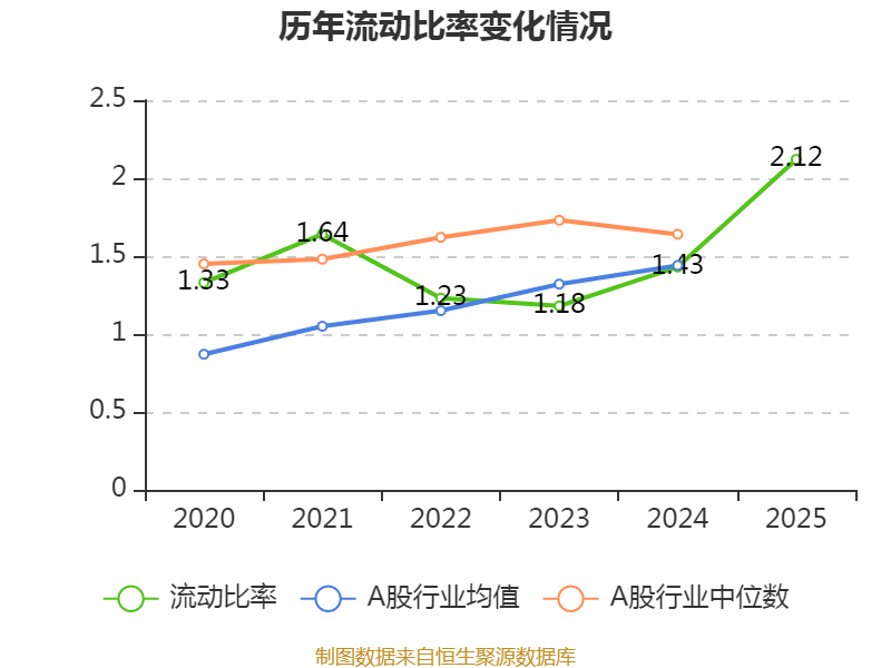 2025年,公司流动比率为2.12,速动比率为1.44。