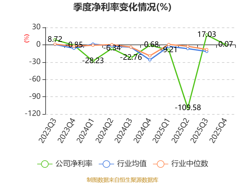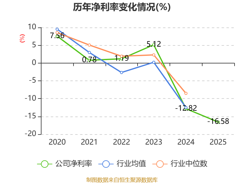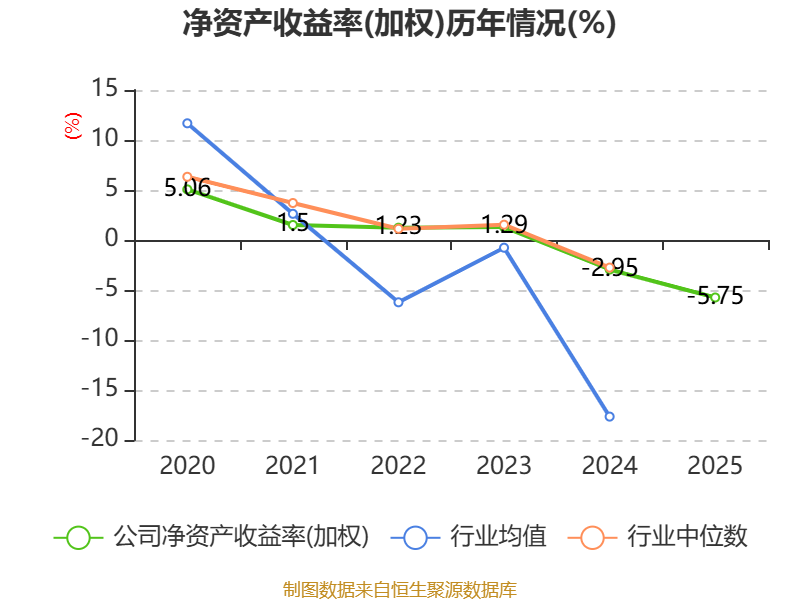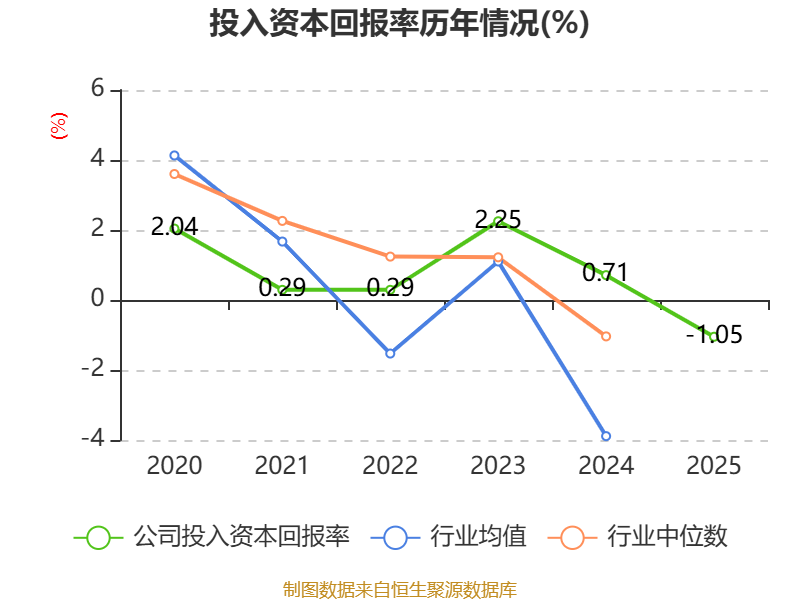 数据显示,2025年公司加权平均净资产收益率为-5.75%,较上年同期下降2.8个百分点。公司2025年投入资本回报率为-1.05%,较上年同期下降1.76个百分点。