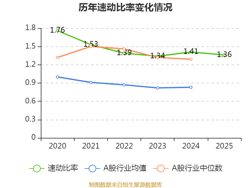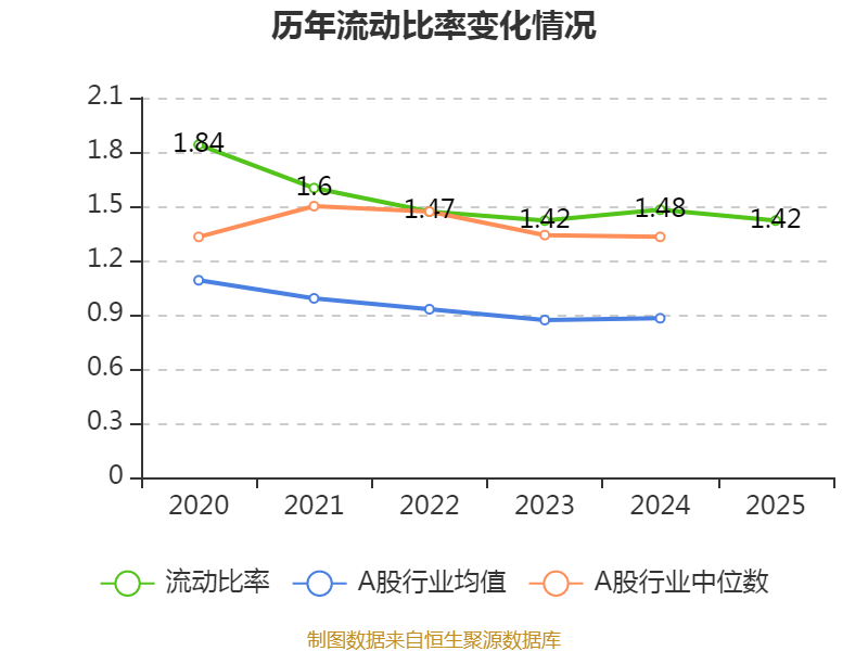 2025年,公司流动比率为1.42,速动比率为1.36。