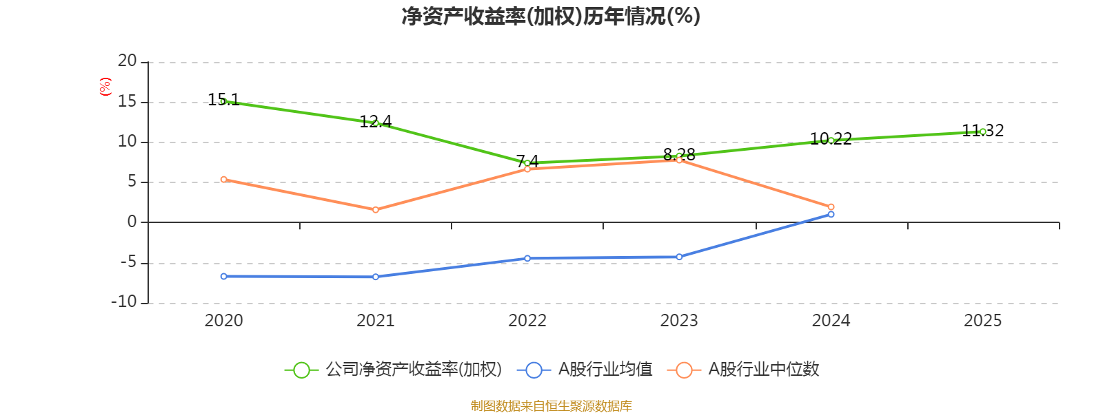 数据显示,2025年公司平均净资产收益率为11.32%,较上年同期上升1.1个百分点。