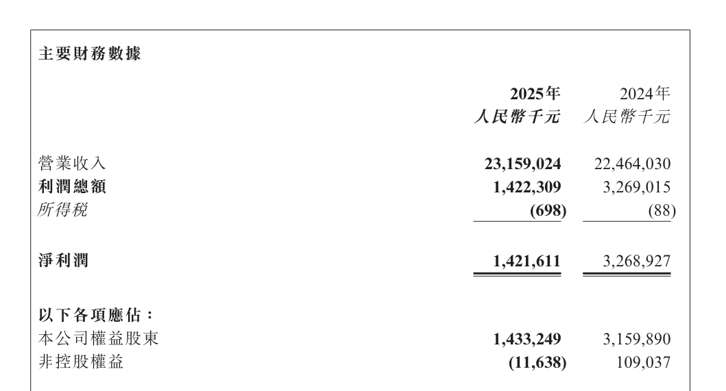 日前,德康农牧(02419)发布的公告显示,该公司2025年实现营收约231.59亿元,同比增长3.09%,营收增速显著放缓;净利润约14.22亿元,同比下滑56.5%;毛利率由2024年的23%减少至2025年的13.7%。