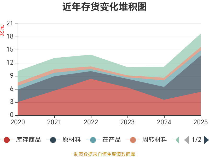 从存货变动来看,截至2025年末,公司存货账面价值为18.66亿元,占净资产的28.43,较上年末增加7.57亿元。其中,存货跌价准备为2.01亿元,计提比例为9.72%。