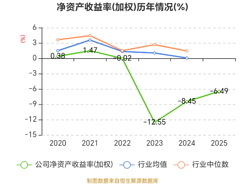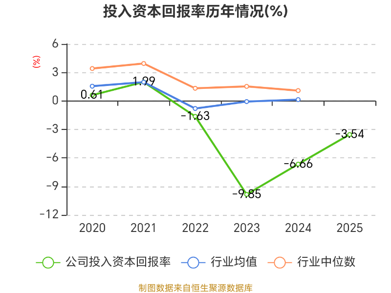 数据显示,2025年公司加权平均净资产收益率为-6.49%,较上年同期上升1.96个百分点。公司2025年投入资本回报率为-3.54%,较上年同期上升3.12个百分点。