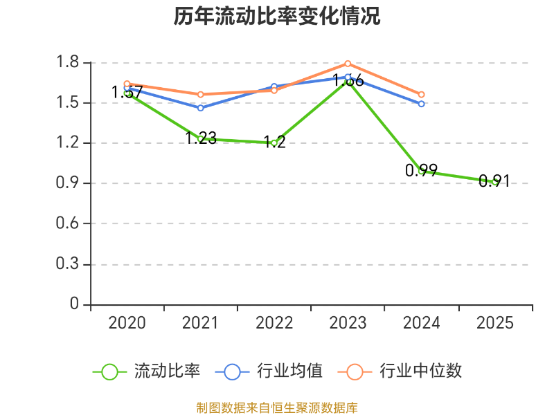 2025年,公司流动比率为0.91,速动比率为0.55。