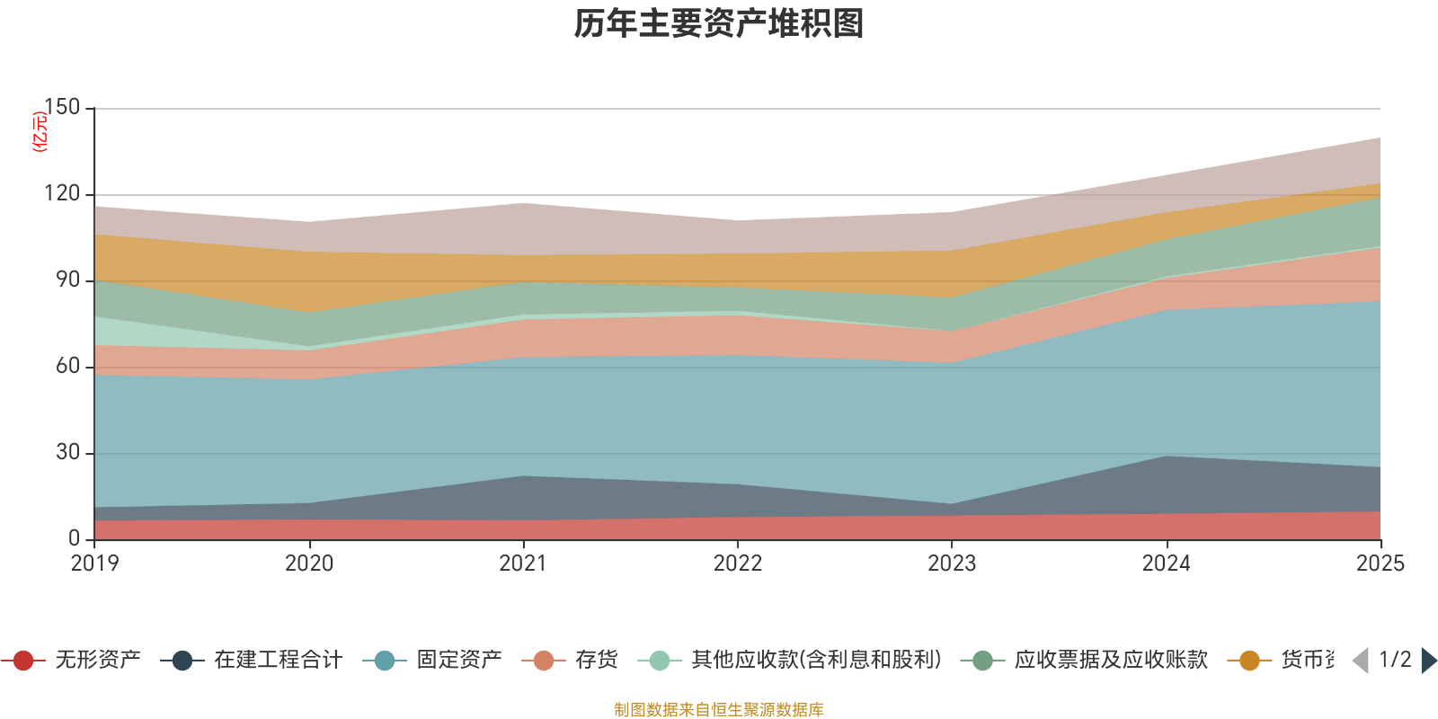 资产重大变化方面,截至2025年末,公司在建工程合计较上年末减少23.09%,占公司总资产比重下降4.8个百分点;存货较上年末增加68.17%,占公司总资产比重上升4.6个百分点;货币资金较上年末减少48.32%,占公司总资产比重下降3.95个百分点;应收票据及应收账款较上年末增加31.11%,占公司总资产比重上升1.92个百分点。