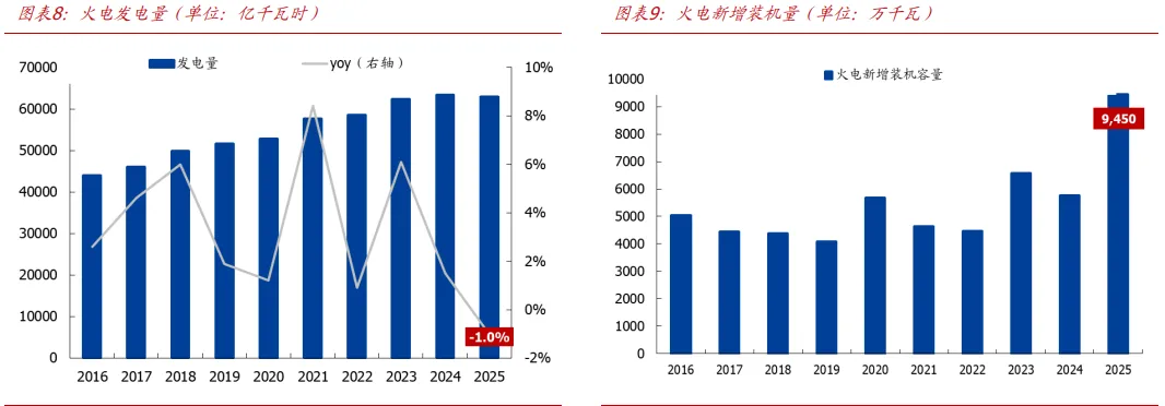 2025年,电力需求维持平稳增长,我国全社会用电10.37万亿千瓦时,同比增长5.0%。预计十五五期间我国将呈现“宽电量、紧电力”的电力供需格局,综合电价有望企稳。