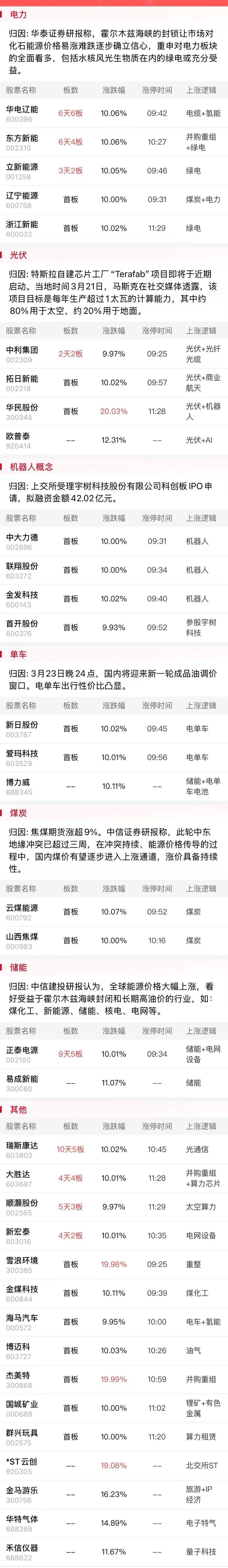 3月23日午间涨停分析