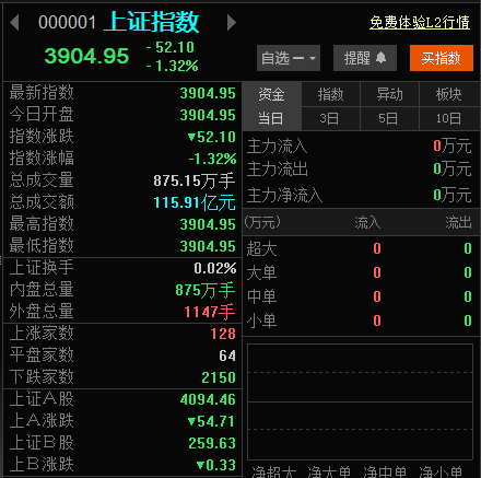 【大河财立方消息】3月23日,A股大幅低开,上证指数下跌1.32%,报3904.95点。