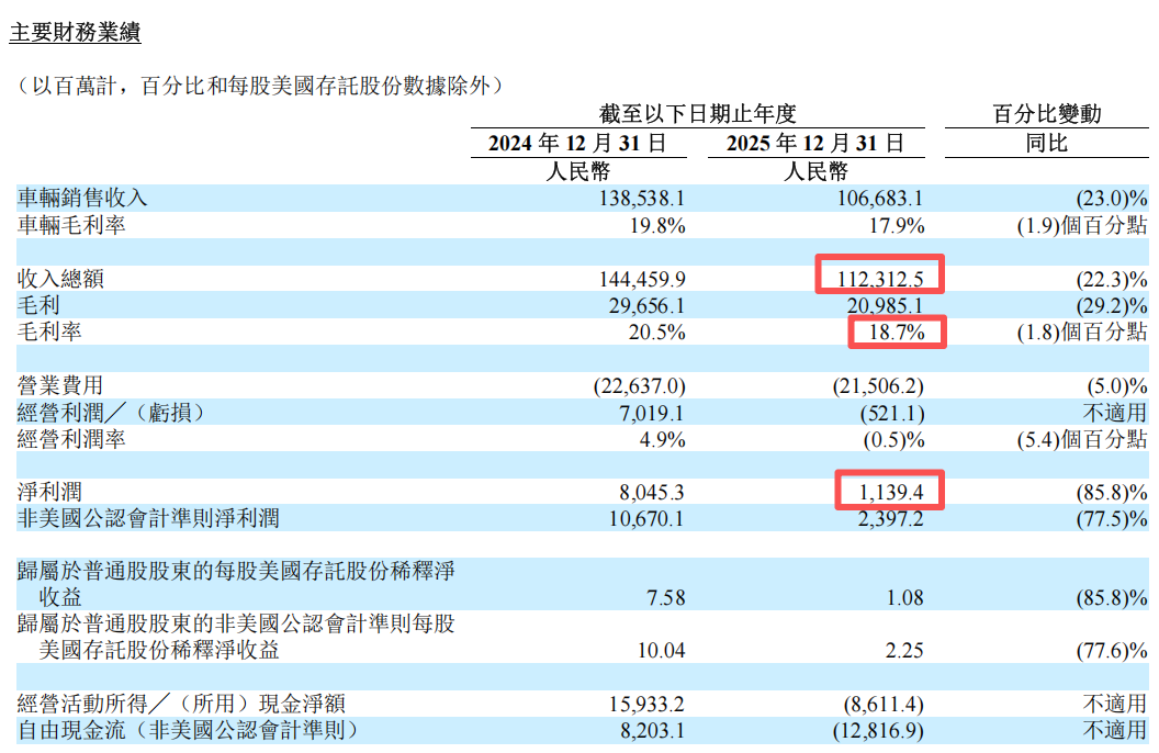 零跑采取“薄利多销”的策略,也导致其虽然是2025年全年销冠,但同期毛利率没能取得明显优势。