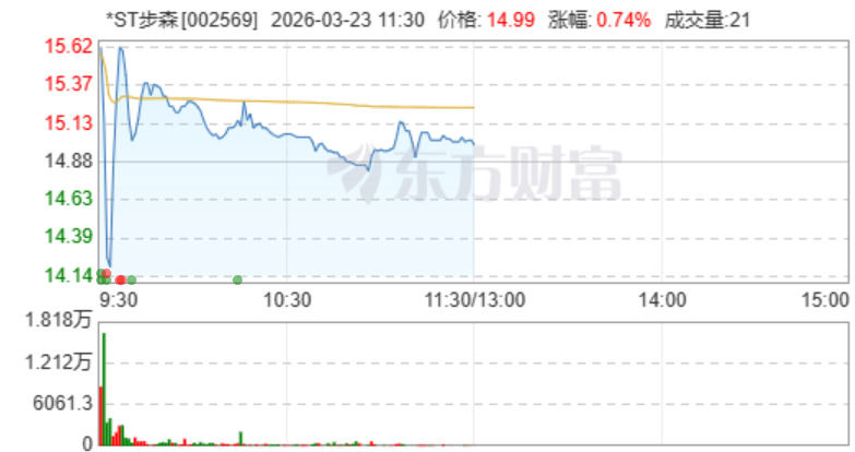 3月23日上午,*ST步森在复牌后7分钟内上演“天地天板”。截至发稿,该股涨0.74%,振幅9.95%,换手率5.09%,成交额1.09亿元。