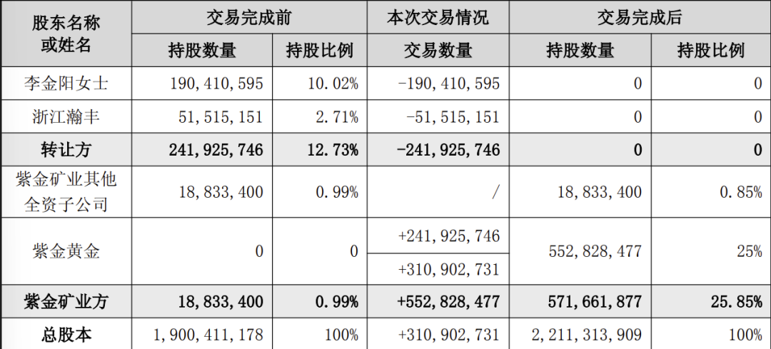 紫金矿业收购赤峰黄金的股权变动情况。