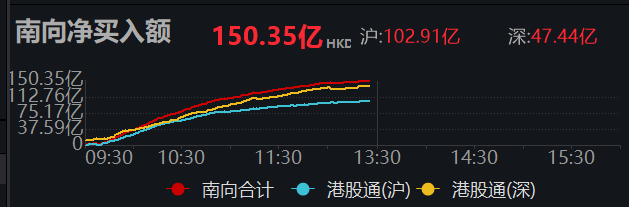 3月23日13时25分,南向资金净买入额超150亿港元,达到150.35亿港元。